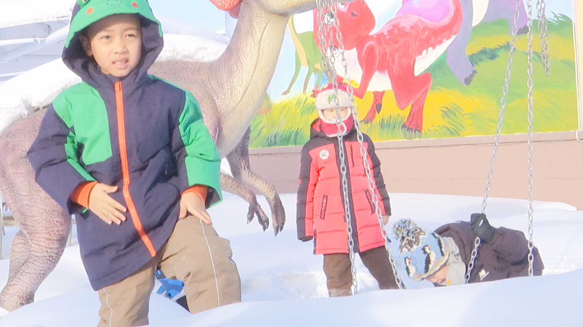红光乡冰雪乐园、界江冰雪恐龙乐园构成欢乐的冰雪矩阵。孩子们身着厚厚的棉衣、背着冲锋枪玩具,在晶莹剔透的冰雪世界里畅玩。