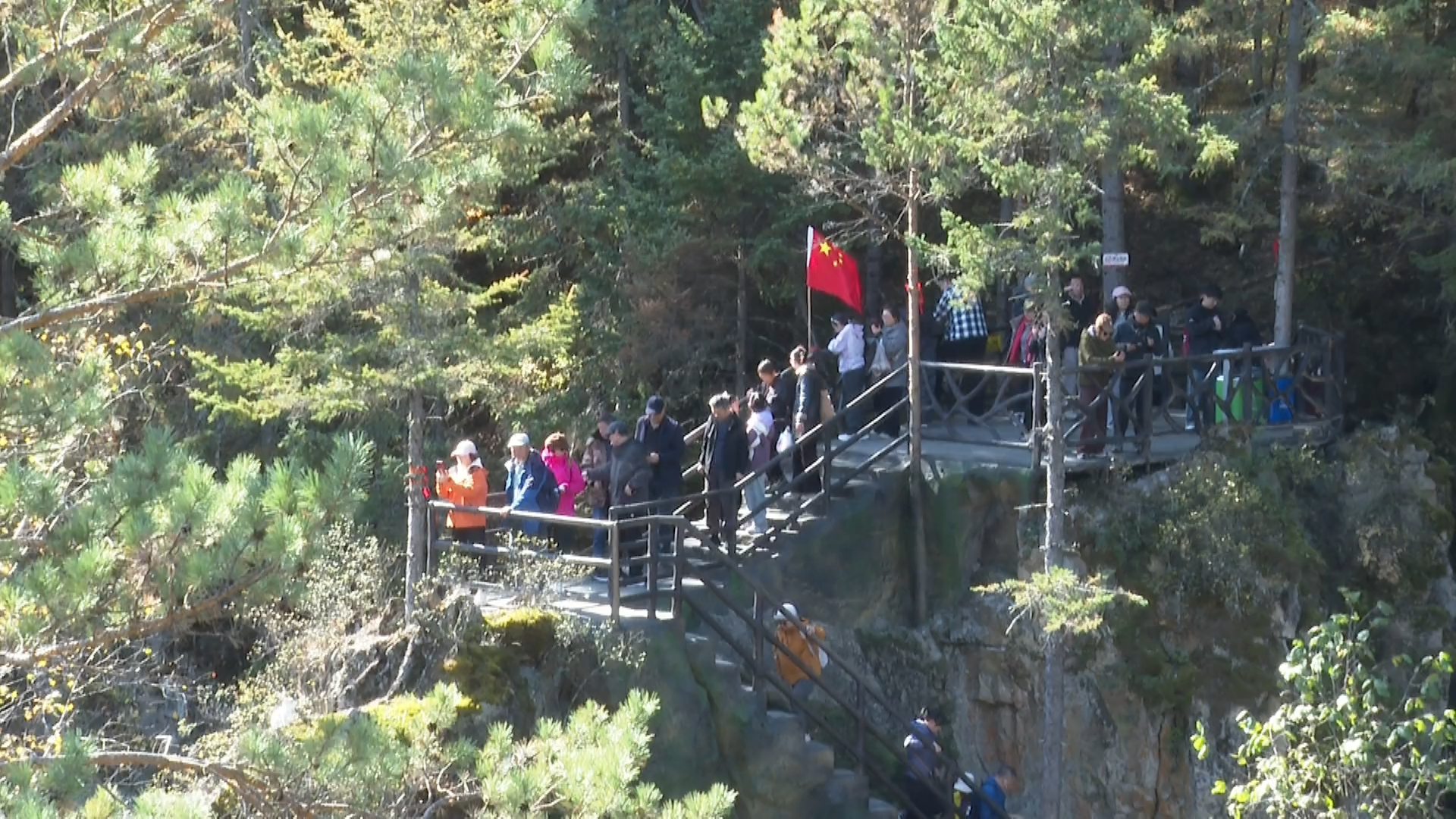 十一黄金周期间,坐落于黑龙江省嘉荫县的茅兰沟国家森林公园迎来“秋日盛景+节日氛围”双重热潮。峡谷间红叶似火、彩林如画,清澈溪流倒映嶙峋奇石,漫山秋景与景区内飘扬的五星红旗相映成趣。各地游客不仅沉醉于“北方小九寨”的秋日浪漫,更在欣赏祖国大好河山中抒发爱国情怀,让这个十一假期既有“诗与远方”的惬意,又有“家国同心”的赤诚。