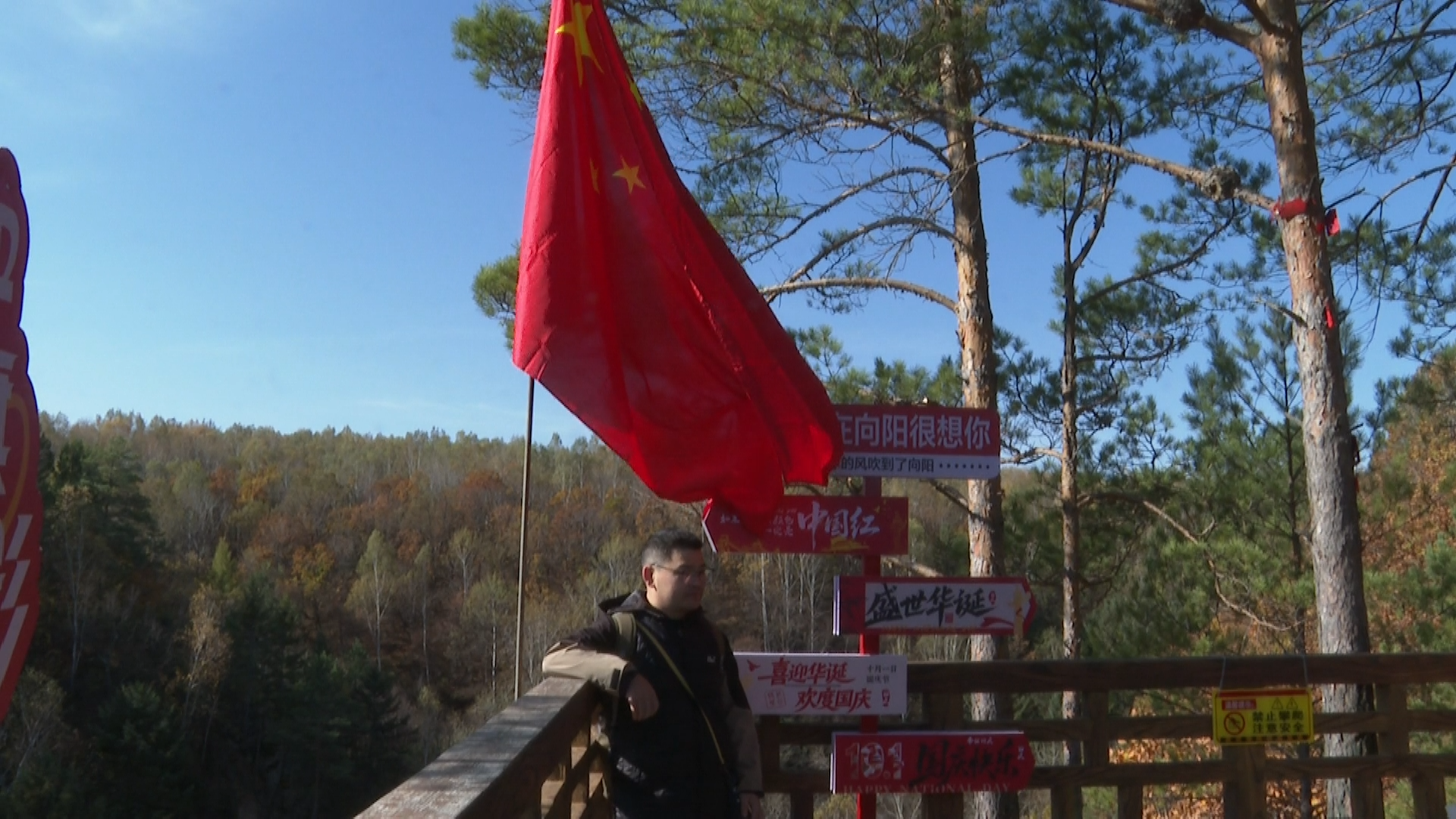 除了自然景致与节日氛围,茅兰沟的秋日“限定体验”也让游客沉浸式感受家国情怀。游客在徒步赏景时了解嘉荫的生态资源与国家生态保护成果;部分观景平台设置“最佳拍摄点”指引,不少摄影爱好者蹲守在观景台,镜头里云雾散开,国旗与彩林若隐若现,不只是拍风景,更是拍对祖国的热爱。画面里有秋的绚烂,更有国的庄严。