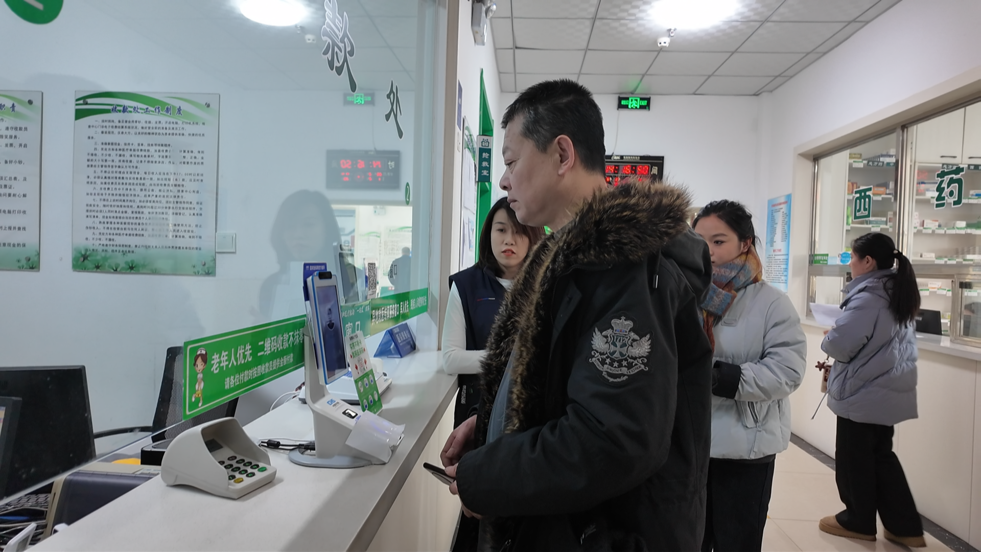 在朝阳镇社区卫生服务中心的挂号窗口,记者没有掏出手机扫描医保码,也没有翻找实体社保卡,而是直接站在了一台带有摄像头的智能终端前。在工作人员的引导下,记者将脸部对准屏幕,系统瞬间捕捉到面部特征,仅用了短短几秒钟,挂号信息便已录入系统,挂号费也同步完成了医保结算。随后,记者模拟了就诊后的缴费环节。在药房结算窗口,记者再次面对终端“刷脸”,屏幕上立刻显示出了处方详情和应支付金额。确认无误后,系统直接调取医保账户完成扣款,全程无需接触任何卡片或电子设备。这种“一脸通办”的体验,让记者深刻感受到了什么是真正的“秒支付、免排队”。